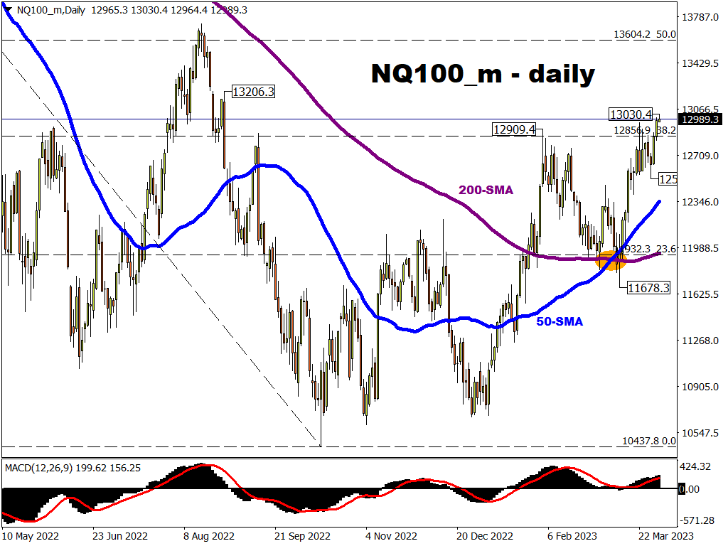 - Stronger-than-expected US jobs report = higher bets for more Fed rate hikes in 2023 = NQ100_m might falter back into sub-13,000 territory