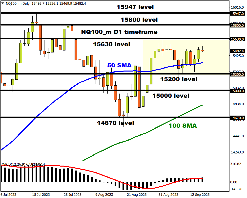 - NQ100_m breakout on horizon with 15200 and 15630 key levels of interest