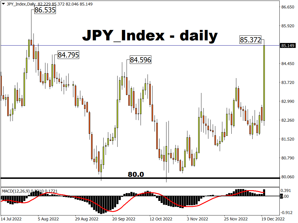 Consider also how the JPY index, which measures the Yen’s performance against six of its G10 peers, has also skyrocketed to a 4-month high!