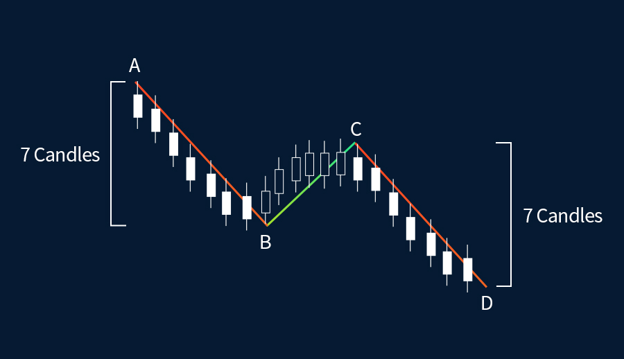 雖然時間不是技術分析中最可靠的因素,但它是完美AB=CD形態中一個獨特的規格因素。衡量每條腿(即AB、CD)完成所需時間只需簡單計算形成每條腿的相應K線數。