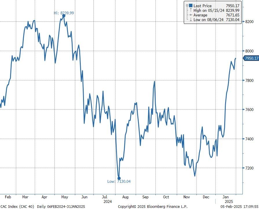 2024年法指雖然也一度創了歷史新高,但年底前馬克宏政府的政治危機導致法。